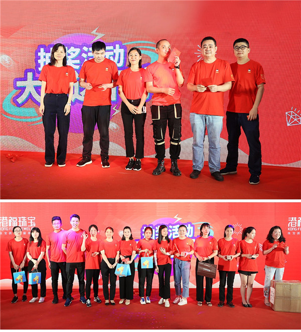 ??旌旗飄飄,笙鼓齊鳴;港福珠寶團圓家宴現(xiàn)場舉行了隆重的開場儀式。伴隨著港福珠寶企業(yè)之歌——《齊心·前行》旋律的響起,護旗手手戴白色手套將象征榮譽的公司之旗護送上臺,整場儀式神圣而莊嚴。