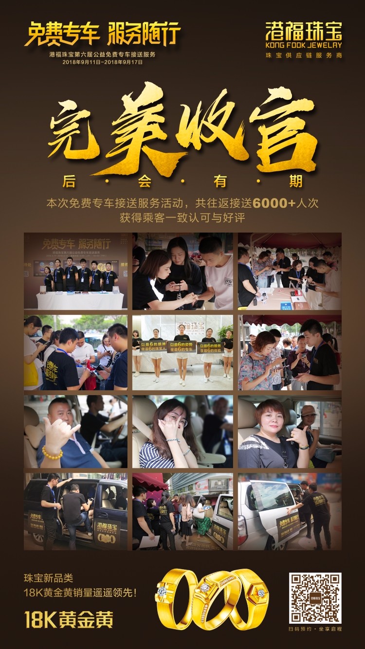 昨日,2018深圳國(guó)際珠寶展覽會(huì)落下帷幕,港福珠寶第六屆公益免費(fèi)專(zhuān)車(chē)接送服務(wù)也順利結(jié)束、完美收官。今天,我們一起來(lái)回顧“免費(fèi)專(zhuān)車(chē)·服務(wù)隨行”的精彩瞬間!