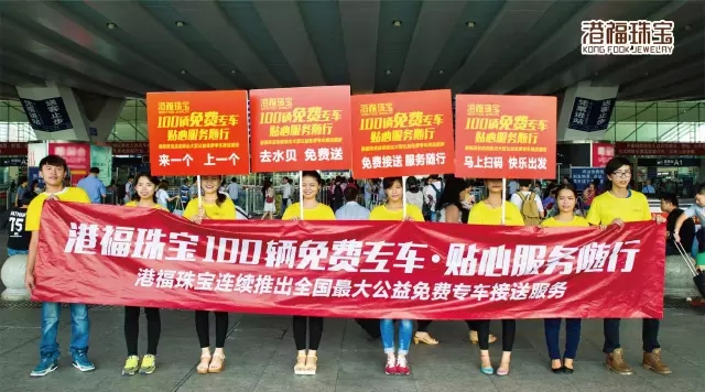 8號(hào)清晨,100輛免費(fèi)專(zhuān)車(chē)隊(duì)伍從港福珠寶總部(水貝)出發(fā),浩浩湯湯的隊(duì)伍兵分兩路,分別開(kāi)往深圳機(jī)場(chǎng)和深圳北站,以隆重的隊(duì)形迎接來(lái)深參加珠寶展的客商們,做好了隨時(shí)服務(wù)的準(zhǔn)備。