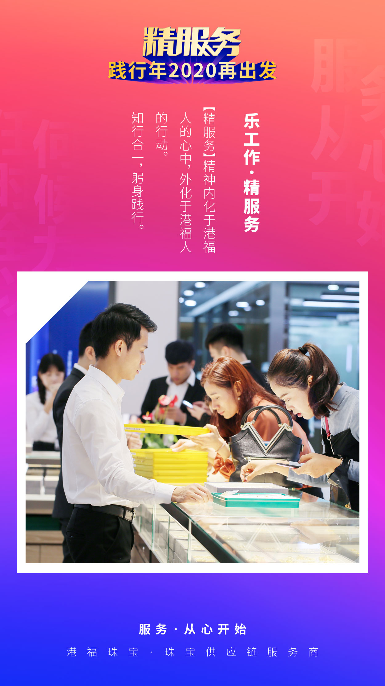 在后疫情時代,港福珠寶將繼續(xù)貫徹落實精服務理念,不斷以客戶為導向做精服務。而這種始于客戶需求、終于客戶滿意的“精服務”,才能不斷帶給客戶、合作伙伴以及員工超預期的好產品、好平臺、好服務和好體驗。