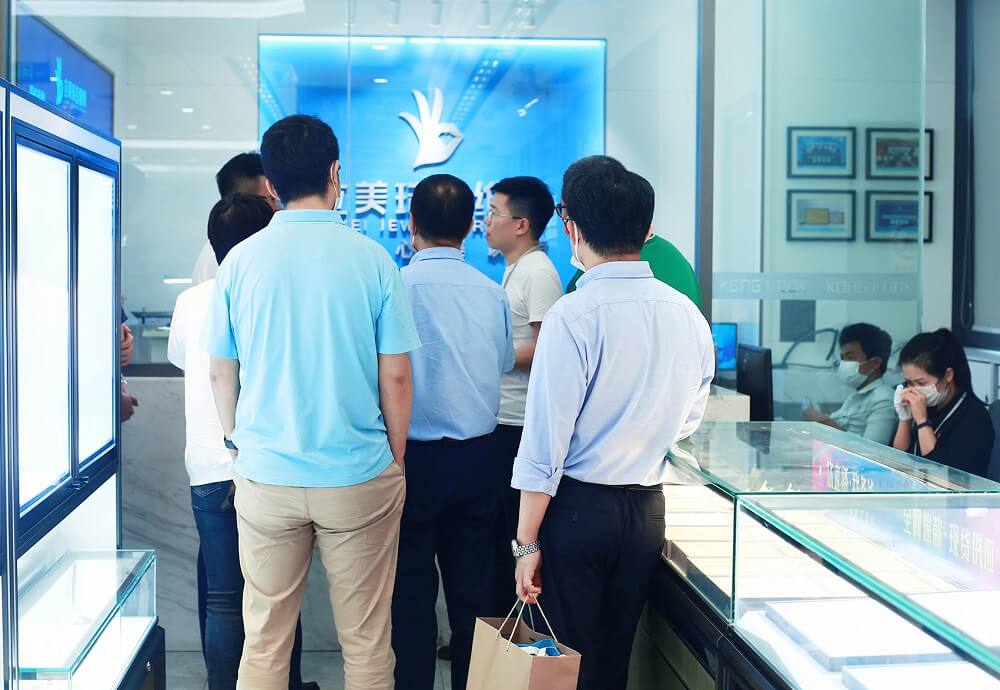會(huì)前,港福珠寶總裁黃金遠(yuǎn)陪同北京工美集團(tuán)董事長(zhǎng)魏連偉一行參觀了港福珠寶展廳,詳細(xì)了解了立美珠寶售后服務(wù)、極速定制B2B2C、珠寶商云展廳,自動(dòng)化分揀一體機(jī)等項(xiàng)目。北京工美集團(tuán)董事長(zhǎng)魏連偉一行表示首次參觀港福珠寶,見識(shí)到了港福珠寶在珠寶供應(yīng)鏈服務(wù)領(lǐng)域的綜合實(shí)力,并感嘆港福珠寶數(shù)字化平臺(tái)的高速發(fā)展。