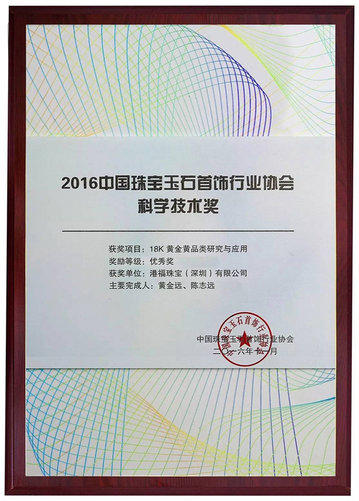 憑借卓著的優(yōu)勢(shì)和實(shí)力,港福珠寶于業(yè)內(nèi)首發(fā)的18K黃金黃品類榮獲“2016中國(guó)珠寶玉石首飾行業(yè)協(xié)會(huì)科學(xué)技術(shù)成果獎(jiǎng)優(yōu)秀獎(jiǎng)”。2017年,我們將全力承接起往年的優(yōu)異榮耀,以更加激昂的斗志和飽滿的熱情,在珠寶的工藝海洋中揚(yáng)帆起航。