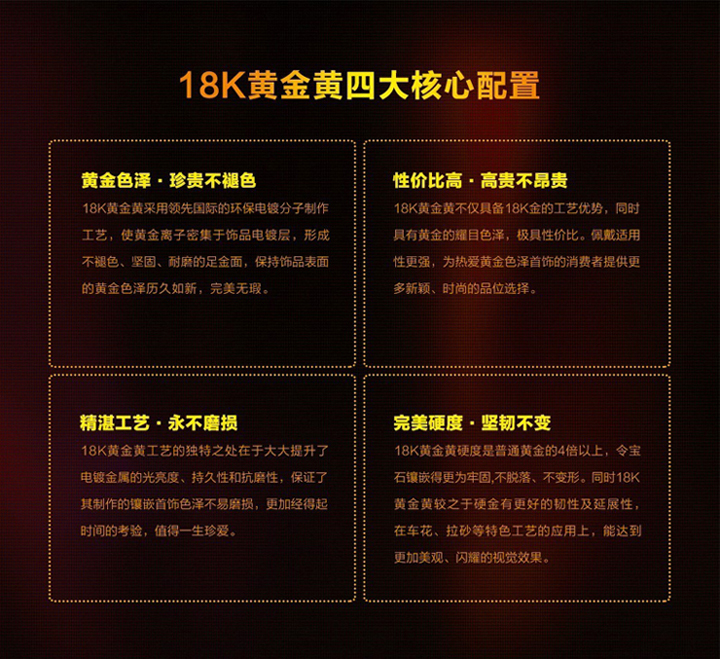 18K黃金黃是一次概念研發(fā)與藝術(shù)設(shè)計(jì)、時(shí)尚創(chuàng)意與精湛工藝的完美碰撞,凝聚“黃金色· 精工藝· 高性價(jià)· 高硬度”四大核心優(yōu)勢(shì),獨(dú)特的創(chuàng)新工藝彌補(bǔ)了黃金鑲嵌的不足,與紫晶、黃晶、托帕石、橄欖石、玉髓、和田玉、碧玉、葡萄石、紅鋯等各類寶石完美結(jié)合,可以實(shí)現(xiàn)更多款式的創(chuàng)新和延伸,為鐘愛黃金色澤的消費(fèi)者提供更多選擇。